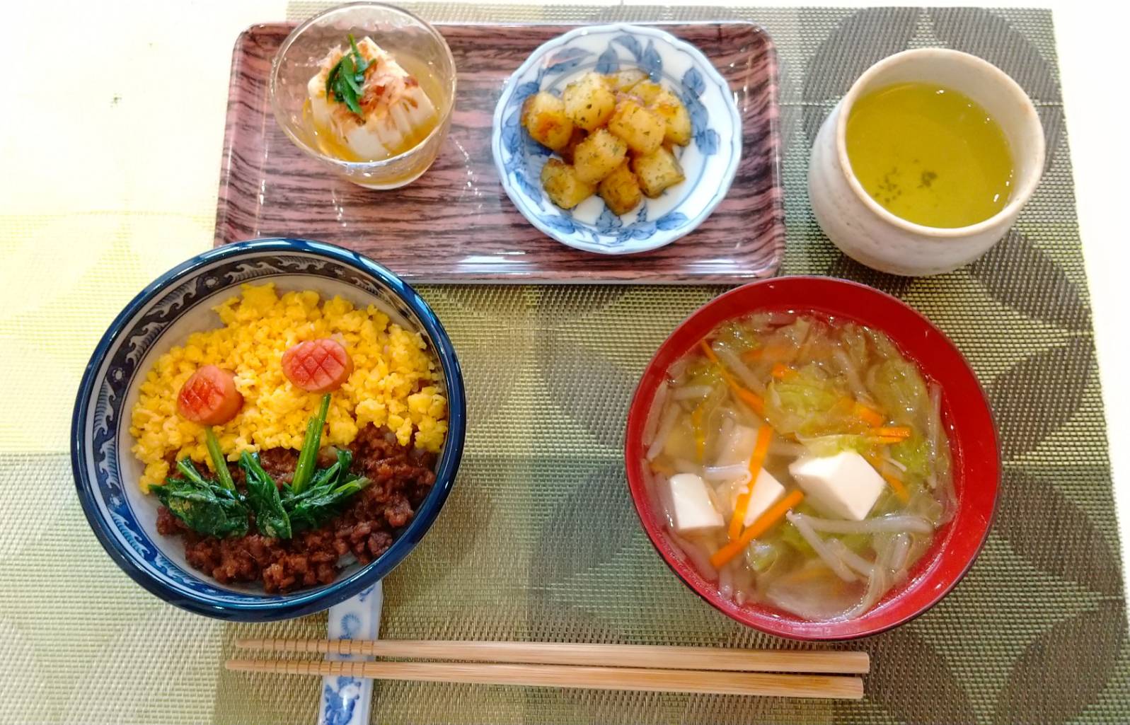 | 11時 | ・昼食の準備 ・ランチマット・箸置きセット ・お茶の準備 |