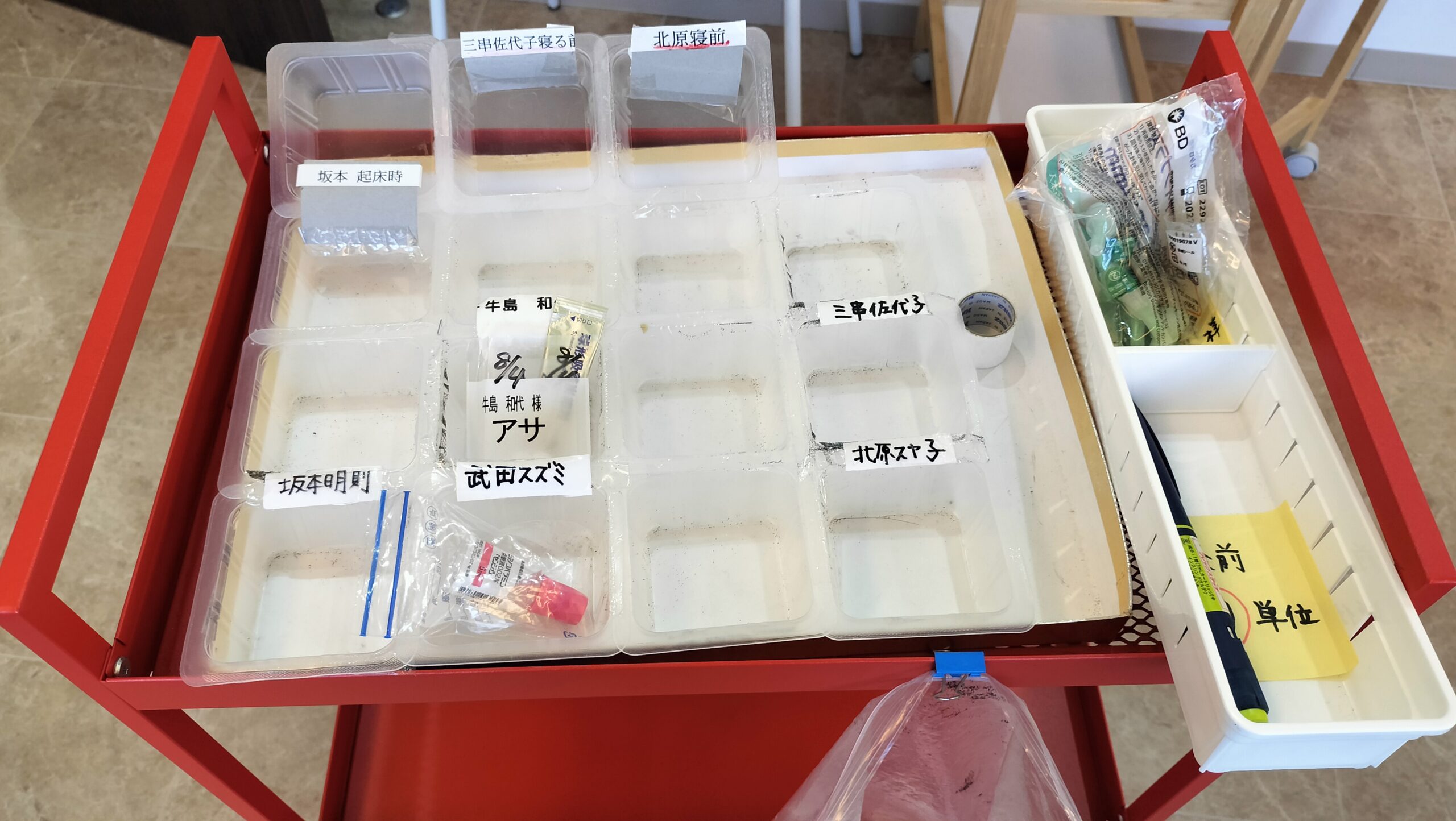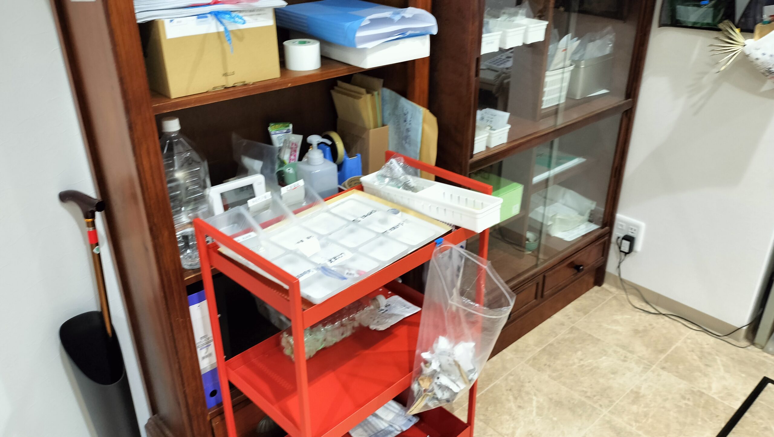 お薬をお渡しするときは、こちらのワゴンに入れて運びます。