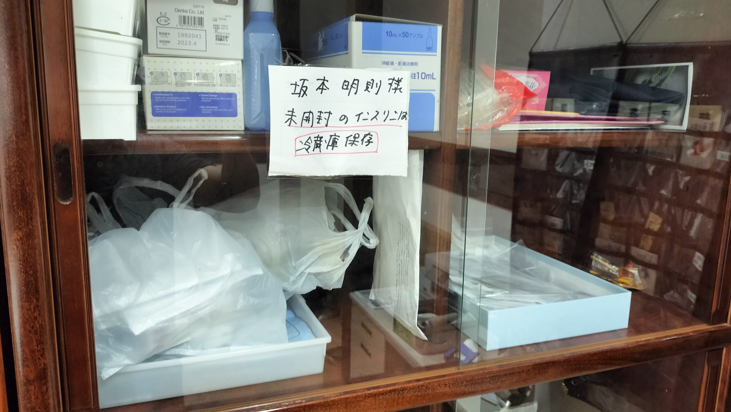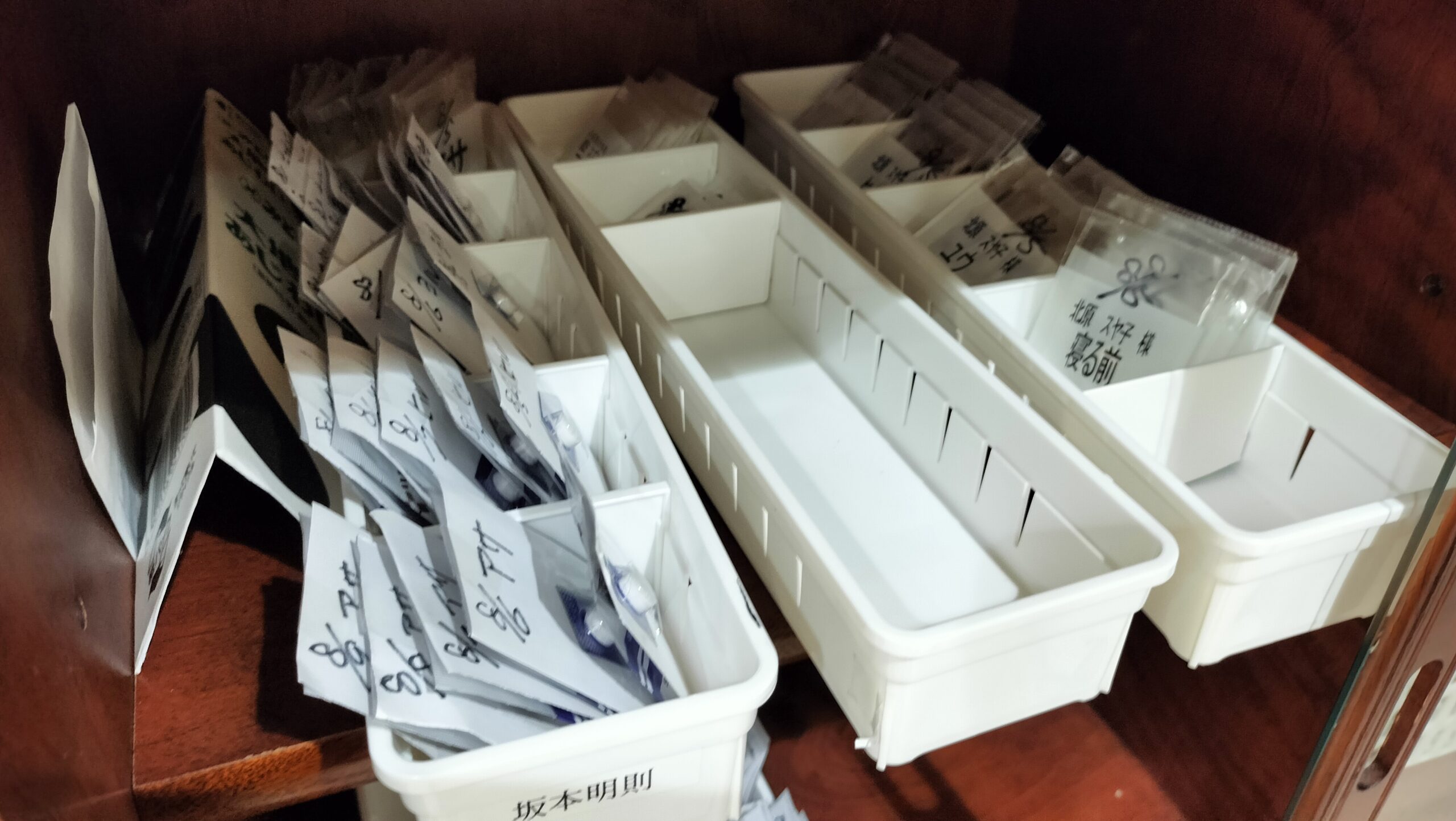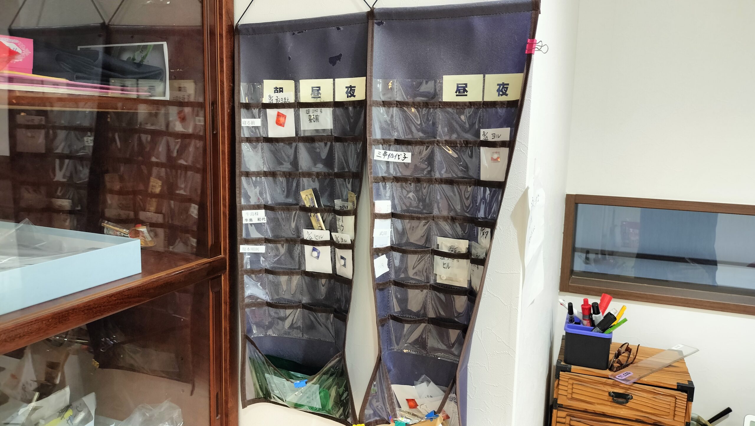 各自のお薬は事務所の棚で保管しております。