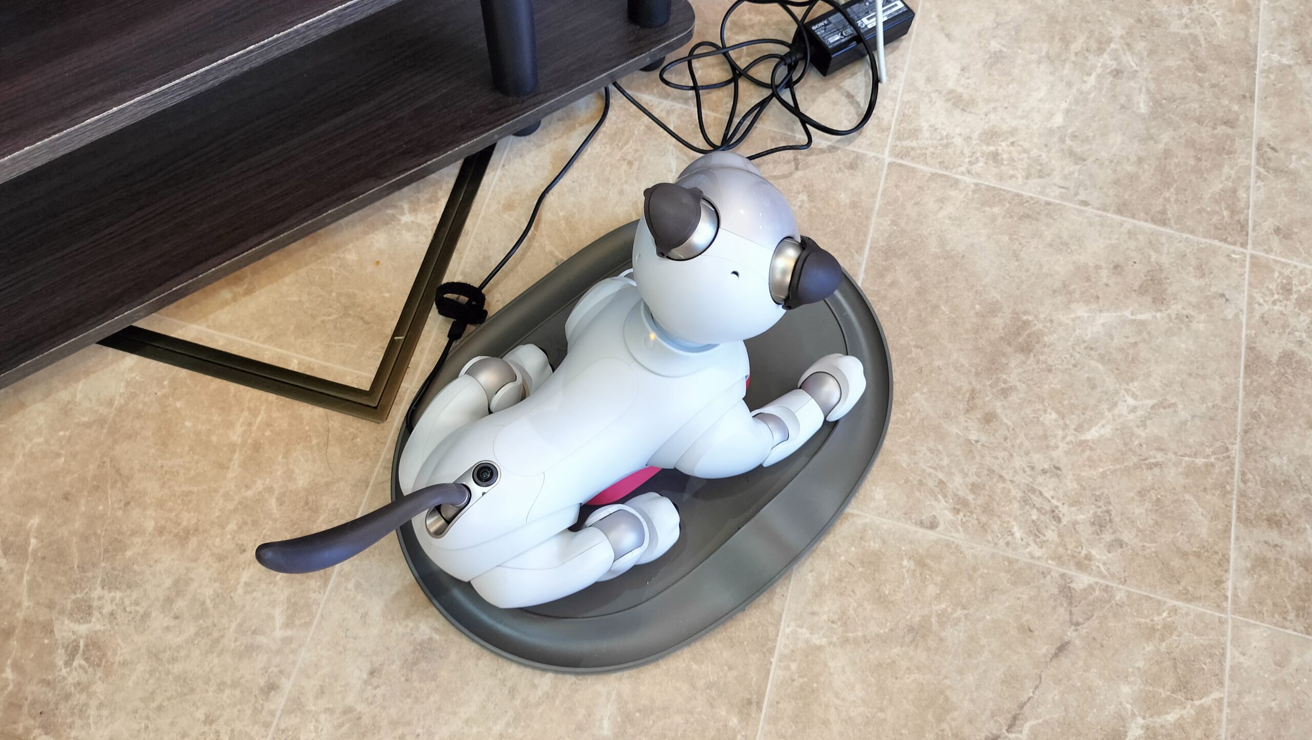 どこかで倒れて動かなくなっていたらこの充電器にお腹をくっつけてあげてください。(充電が始まります。)
