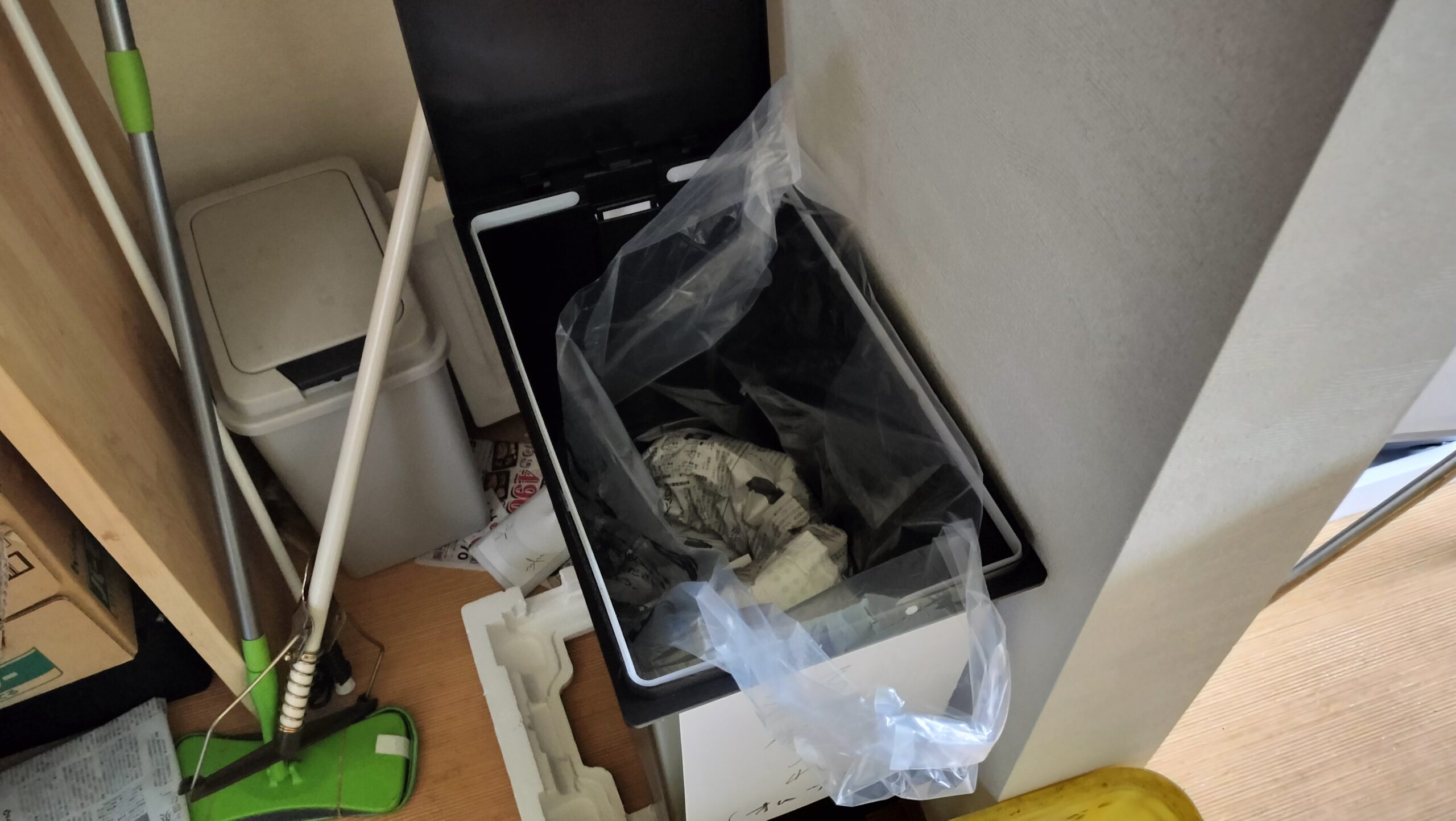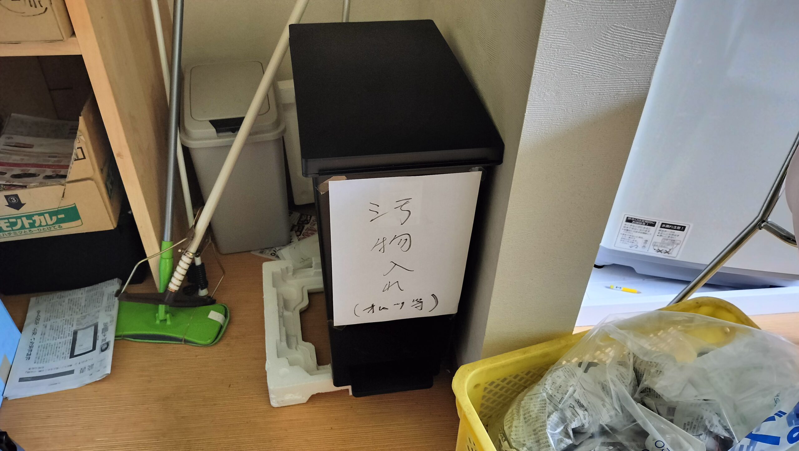 直接入れないで、燃えるゴミの袋をセットしておきます。