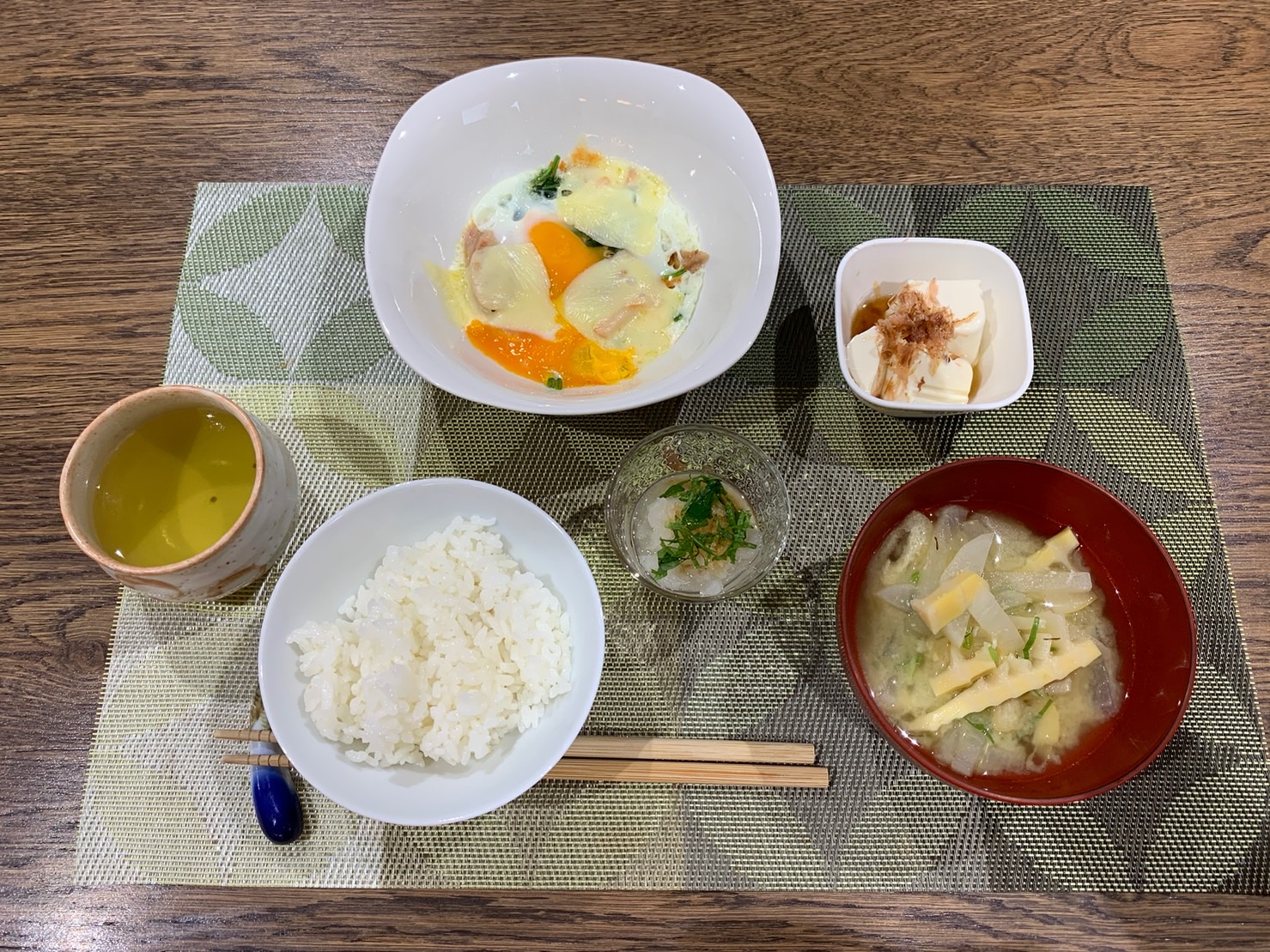 | 7時 | ・お茶の準備 ・ランチマット・箸置きセット ・朝食のご提供(7時〜8時頃) ・朝食の写真をLINEで共有 |