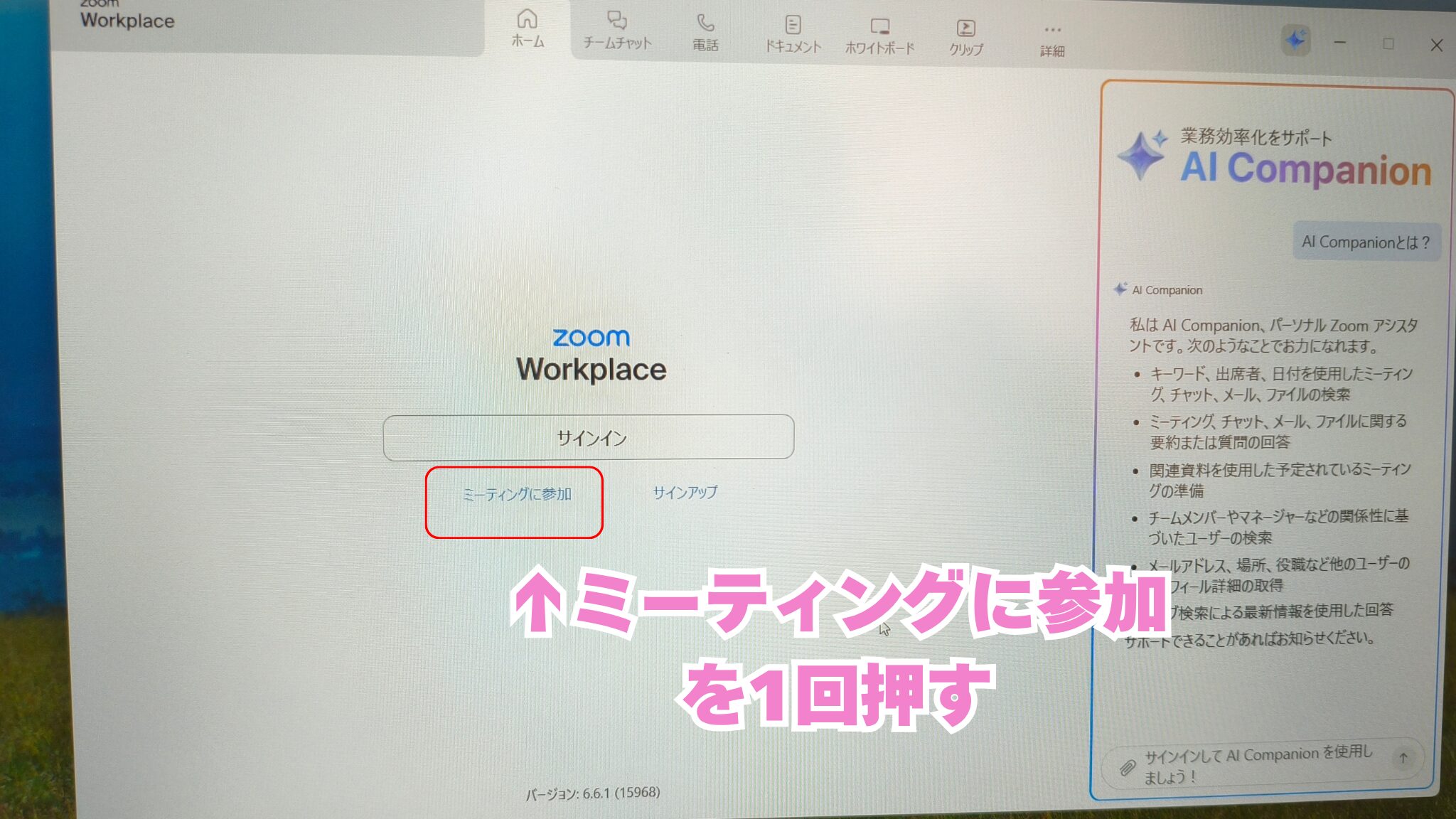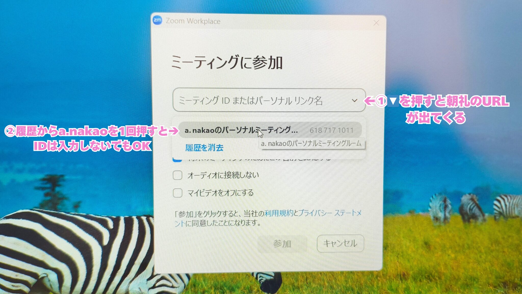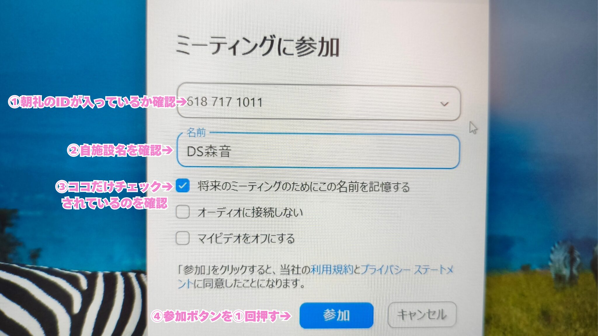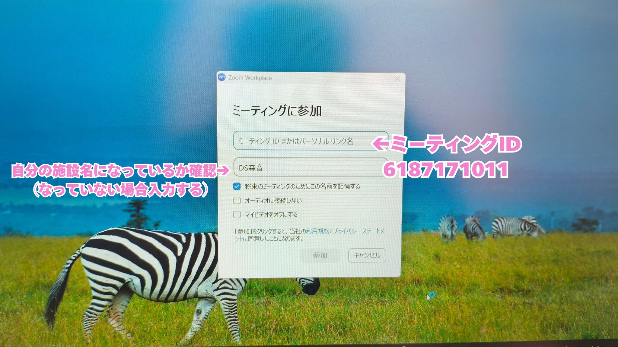 ③ 朝礼のミーティングIDを入力する
