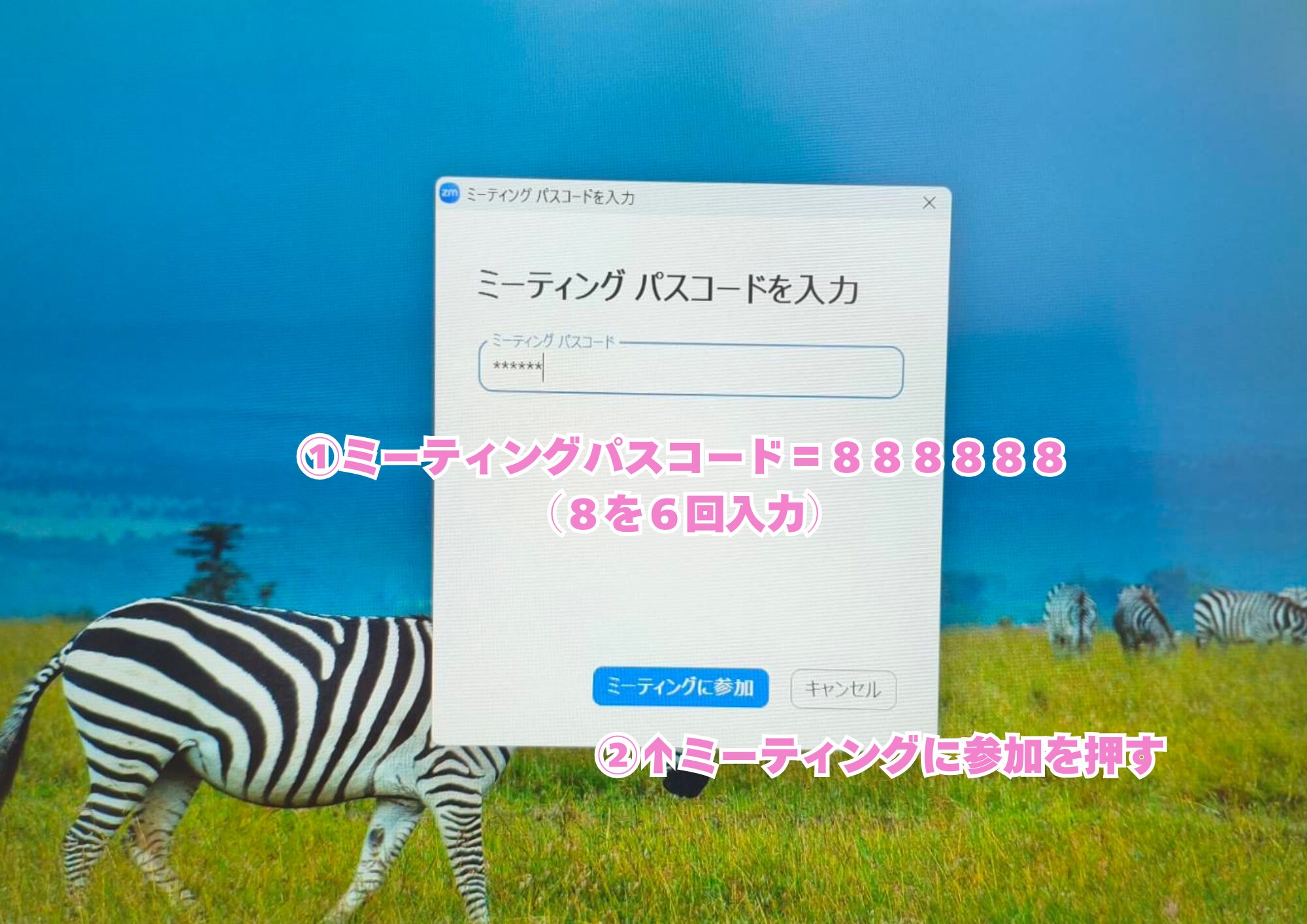 ⑤ミーティングパスコードの入力