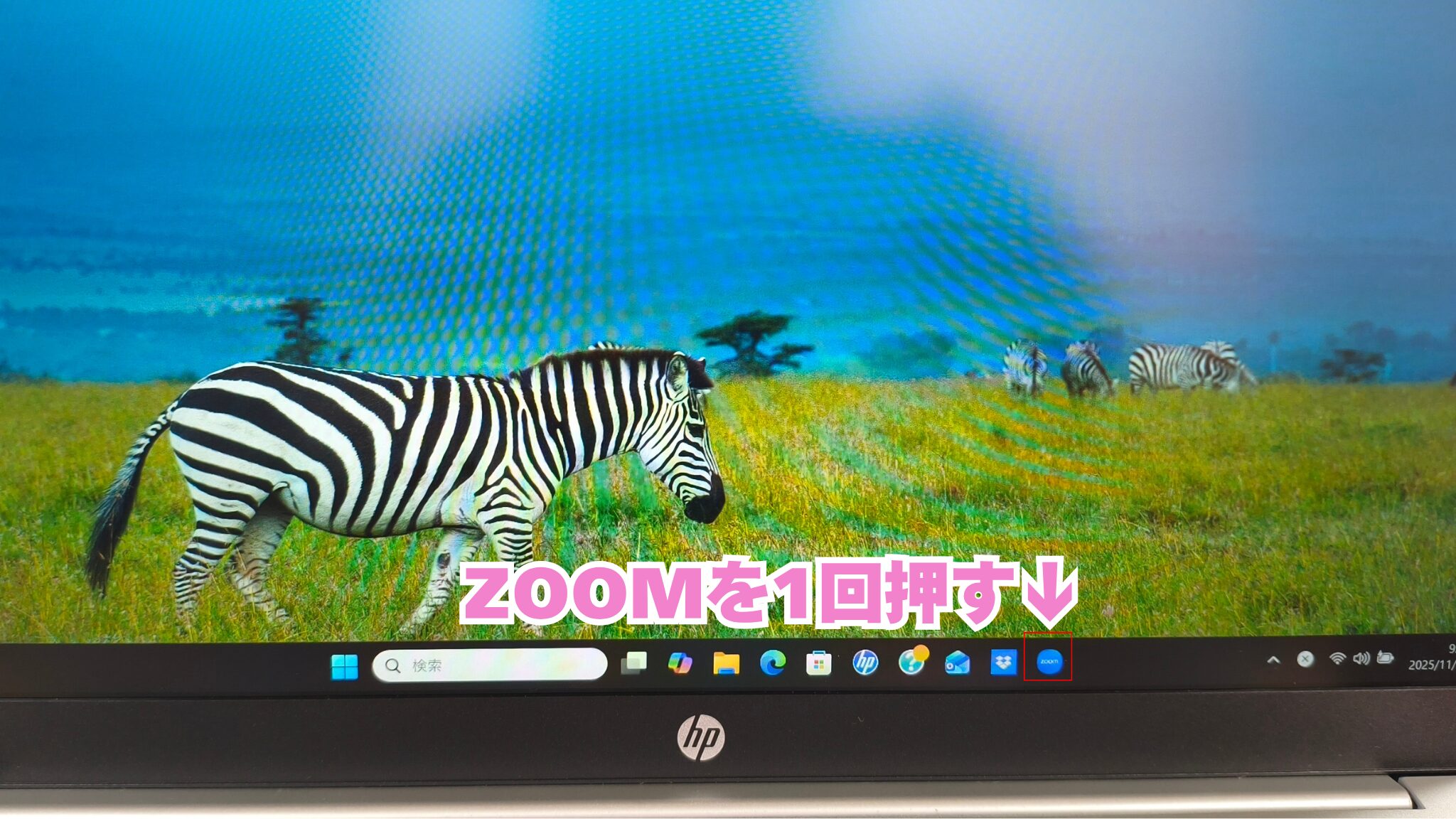 オンライン朝礼に参加するために、ZOOMというアプリ(ソフト)を起動します。